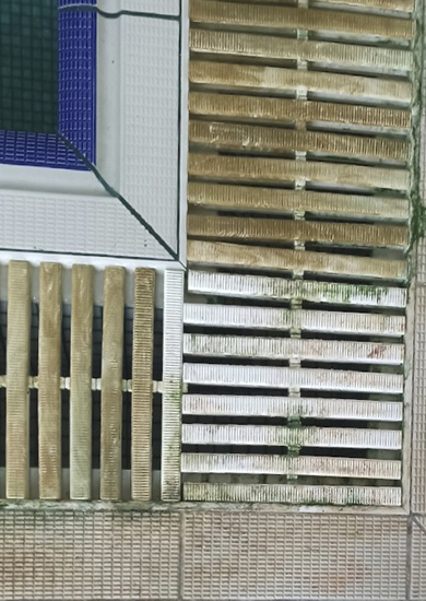 Появились образования солевых отложений на переливных решетках в результате превышенного срока эксплуатации.